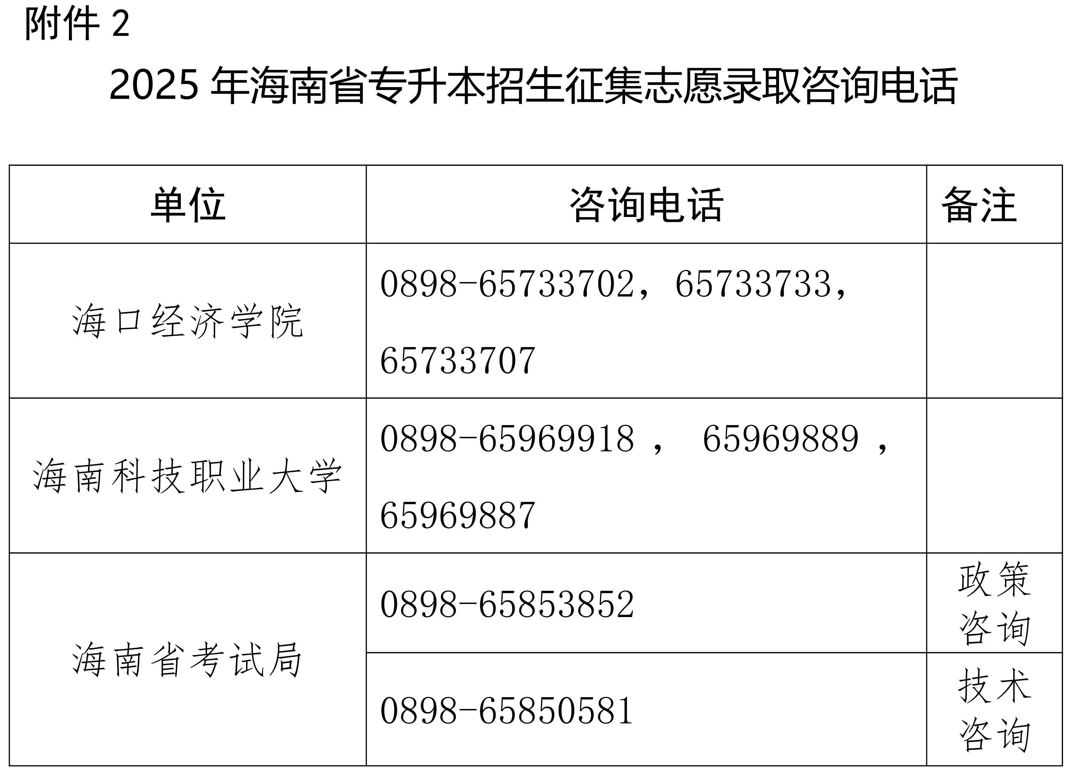 2.2025年海南省专升本招生征集志愿录取咨询电话