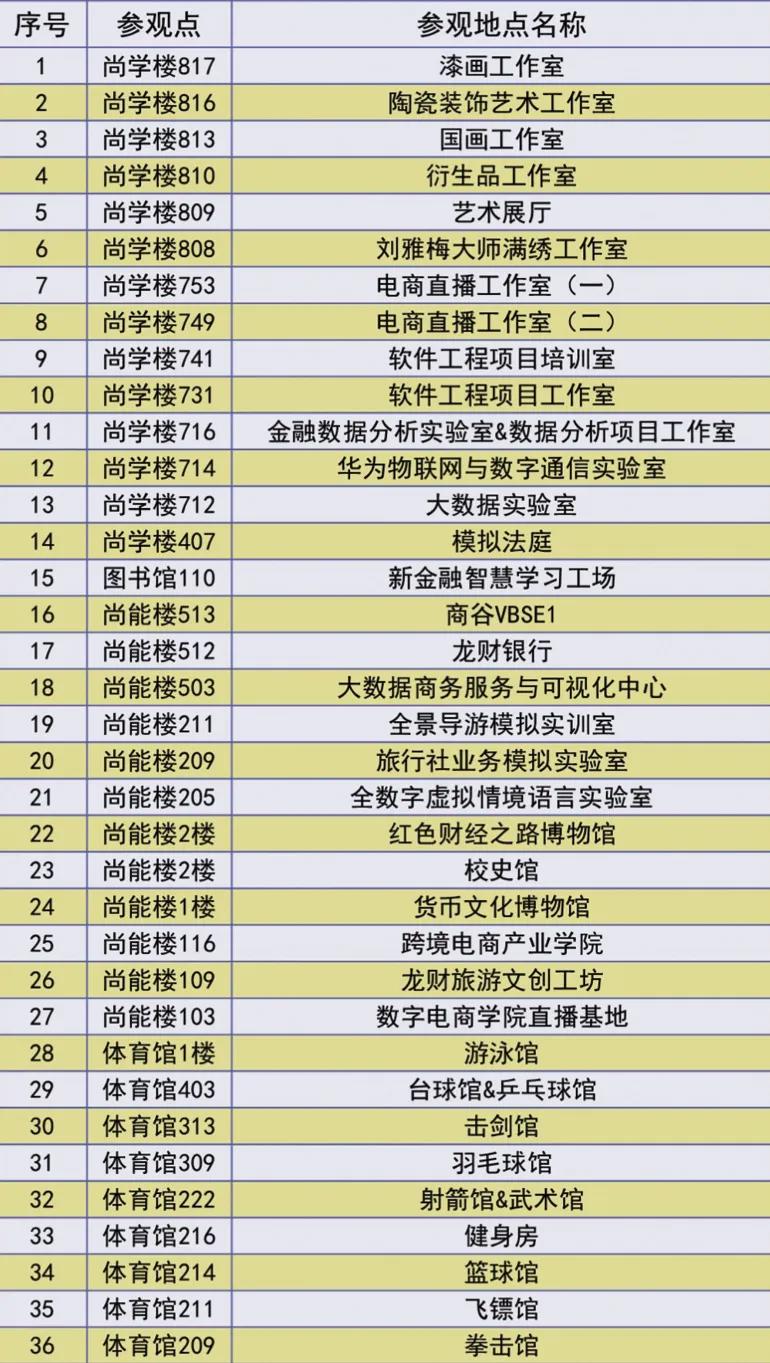 4.自行参观开放的教学楼、体育馆、音乐厅、图书馆、校史馆、红色财经之路博物馆、货币文化博物馆、第三学生公寓、饮食中心、恬园餐厅