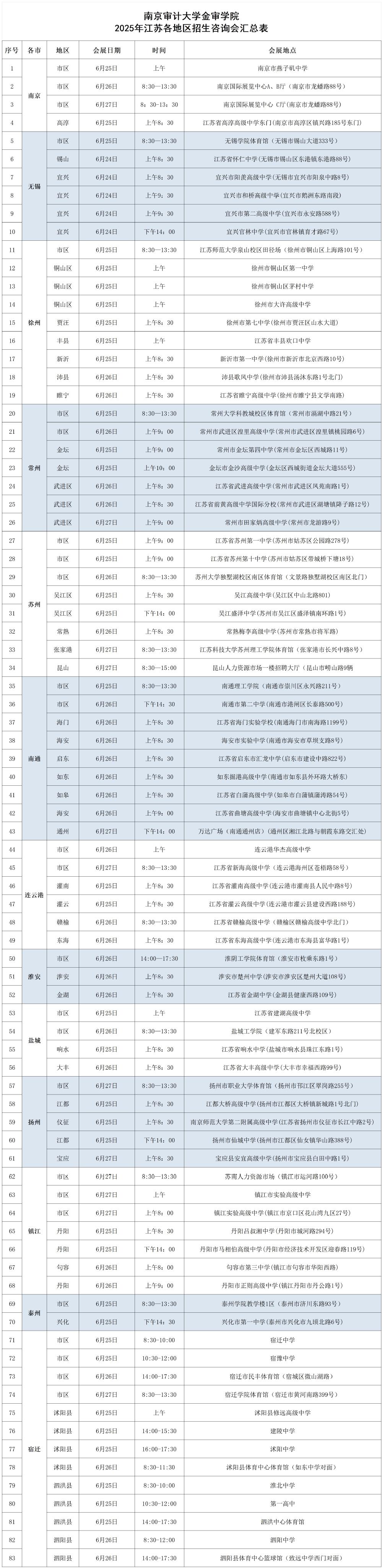 2025年南京审计大学金审学院江苏省各地区招生咨询会汇总表