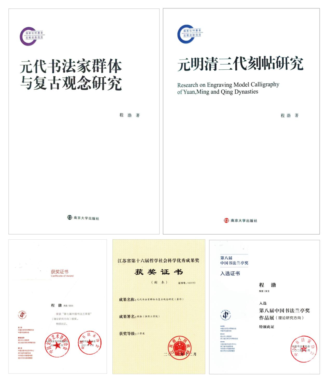 程渤教授获第七届、第八届中国书法兰亭奖银奖、入选奖,江苏省哲社成果二等奖
