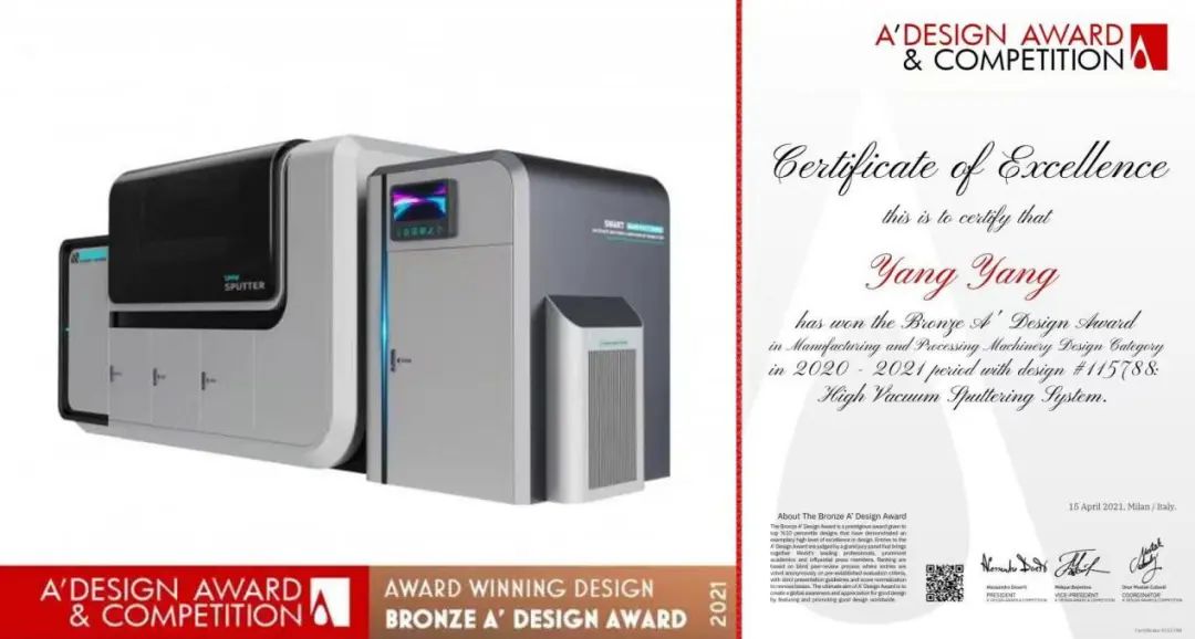 杨洋老师作品《真空共焦磁控溅射系统》获得意大利 A' 设计大奖铜奖