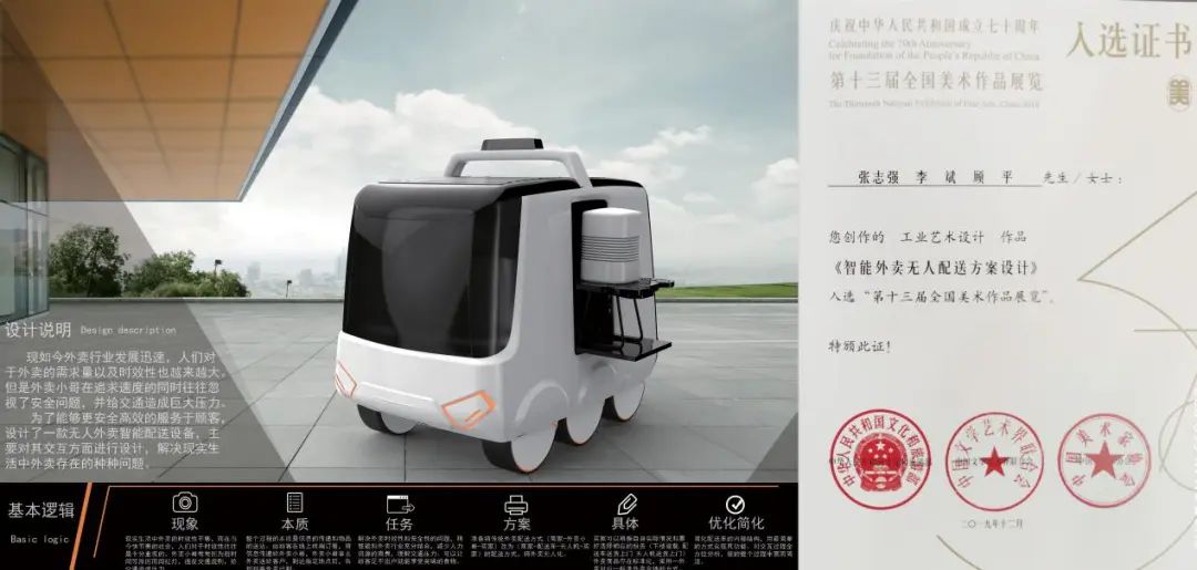 张志强老师作品《智能外卖无人配送方案设计》入选全国美术作品