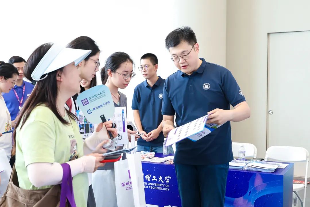 学校还在图书馆一楼开展学院、研究院、书院的现场交流展示与咨询活动。据悉,深圳理工坚持学院—研究院—书院“三院一体”的人才培养模式,旨在通过打破传统院系的物理空间分割实现协同育人。学院开展以学科知识为核心的教育教学,首批建设生命健康学院、合成生物学院、计算机科学与控制工程学院、生物医学工程学院、材料科学与能源工程学院、药学院、算力微电子学院七大学科交叉学院;研究院以科研平台和产业资源为学生提供实习、实践支持;书院则作为学生综合素质发展的“一站式”社区,集生活、学术和文化为一体,帮助学生养成全人格发展体系。