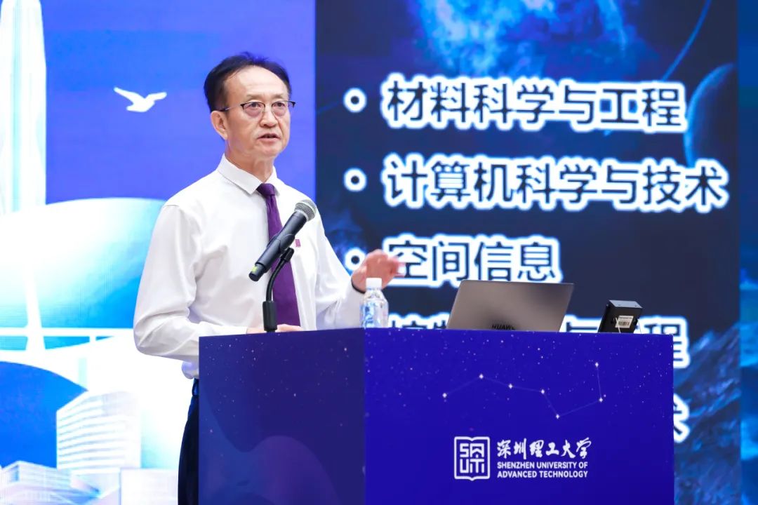 深圳理工大学校长樊建平作了题为《科教融汇、产教融合——建设世界一流新型研究型大学》的学校发展报告,详细介绍了学校的办学理念、学科建设及未来规划。深圳理工是一所高起点、高水平、高标准、高质量建设的公办普通本科学校,定位为新型研究型大学,着重开展基础性、前沿科学技术研究,培养拔尖创新人才。学校借鉴世界一流理工科大学的办学模式,坚持“科教融汇、产教融合”的教育理念——以“深脑、深智、生命、深空、深海、深地”的“六深”前沿方向,联合一流科研机构,布局“科教融汇”力量;链接区域产业资源,构建区域产业发展与创新人才培养双协同的“产教融合”新路径。