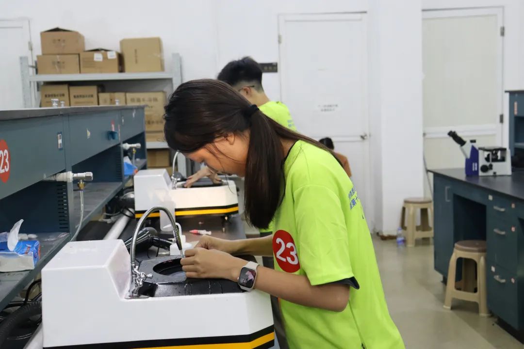 备赛期间,材料科学与能源工程学院副教授廖成竹和实验员李林清从砂纸研磨力度控制等基础操作入手,悉心指导学生,直至将金属样品磨到表面无划痕,呈镜面状态。