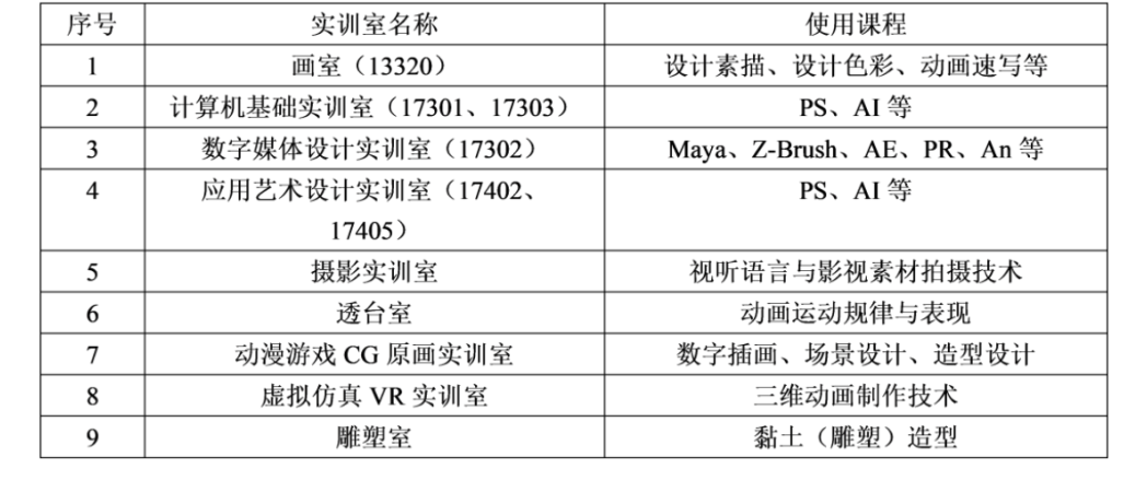 校内实训条件的建设参考实际平面设计、动漫设计等相关企业实际项目制作流程、布局,实训场所的搭建考虑项目、场景教学等多种教学方法的应用,教学设备的技术选择有一定的前瞻性,能够体现“以校为主、企业为辅,师生参与、项目引入”的实践教学硬件、软件建设和教学方式,能承担专业实践课程、各类实训课程及毕业设计作品等教学任务。建议校内实训条件建设以工作室(校中厂)与实训室相结合的形式。