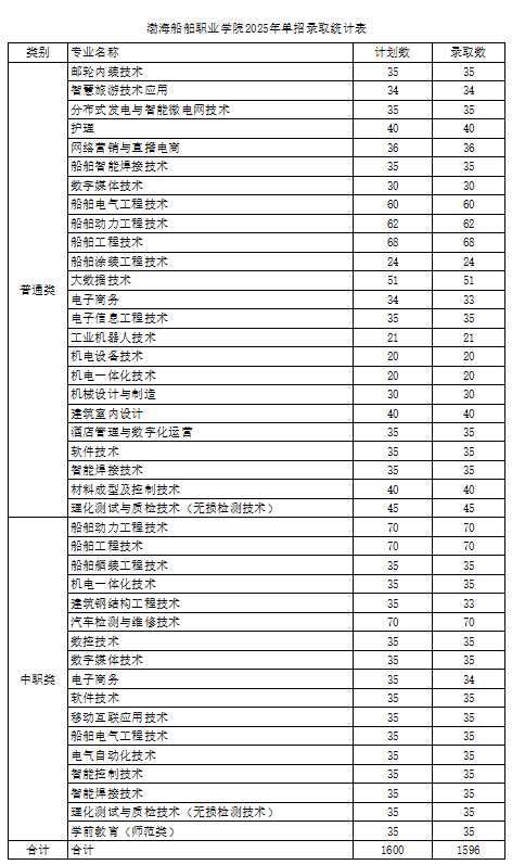 2025年单独招生录取统计表