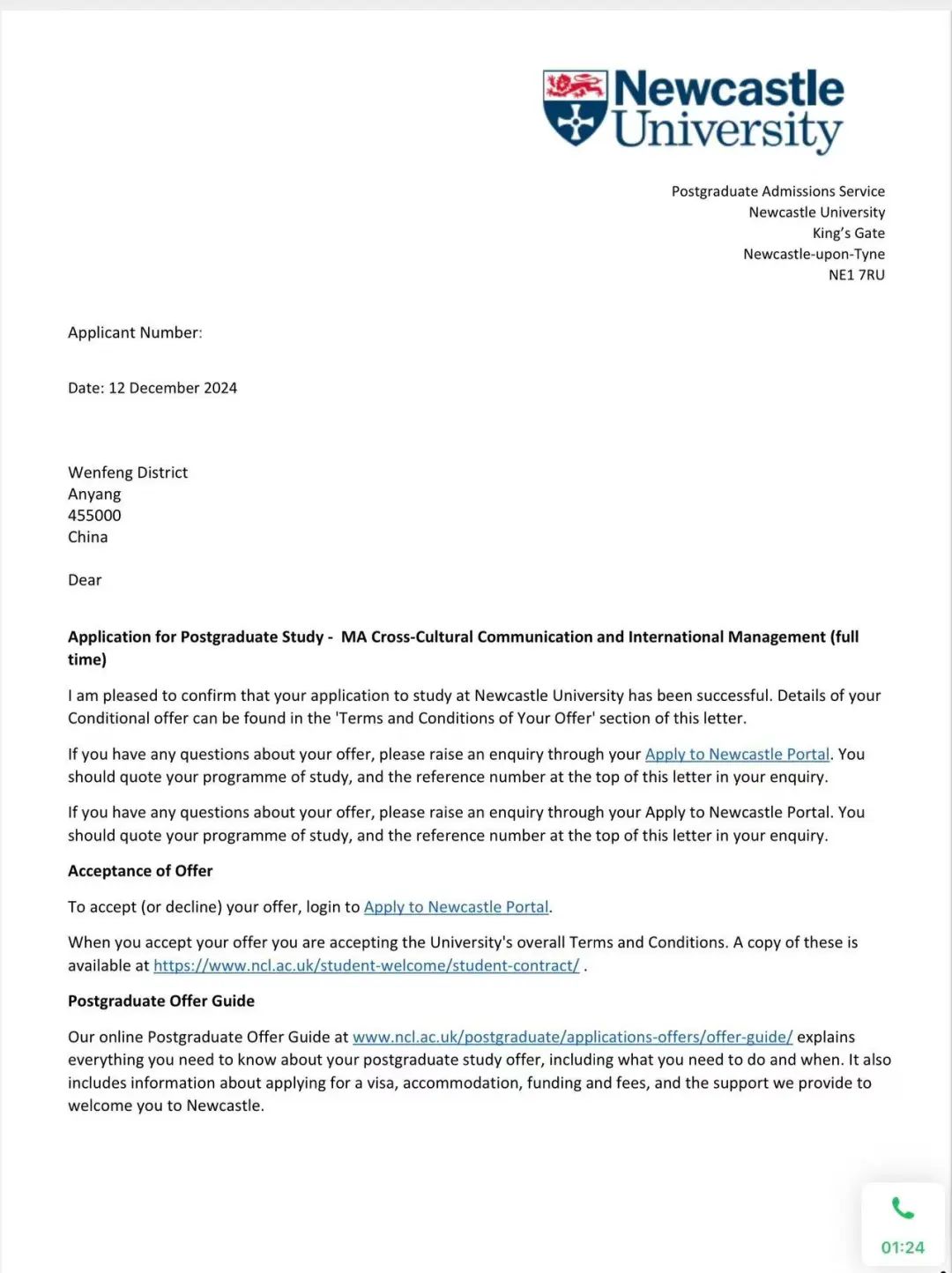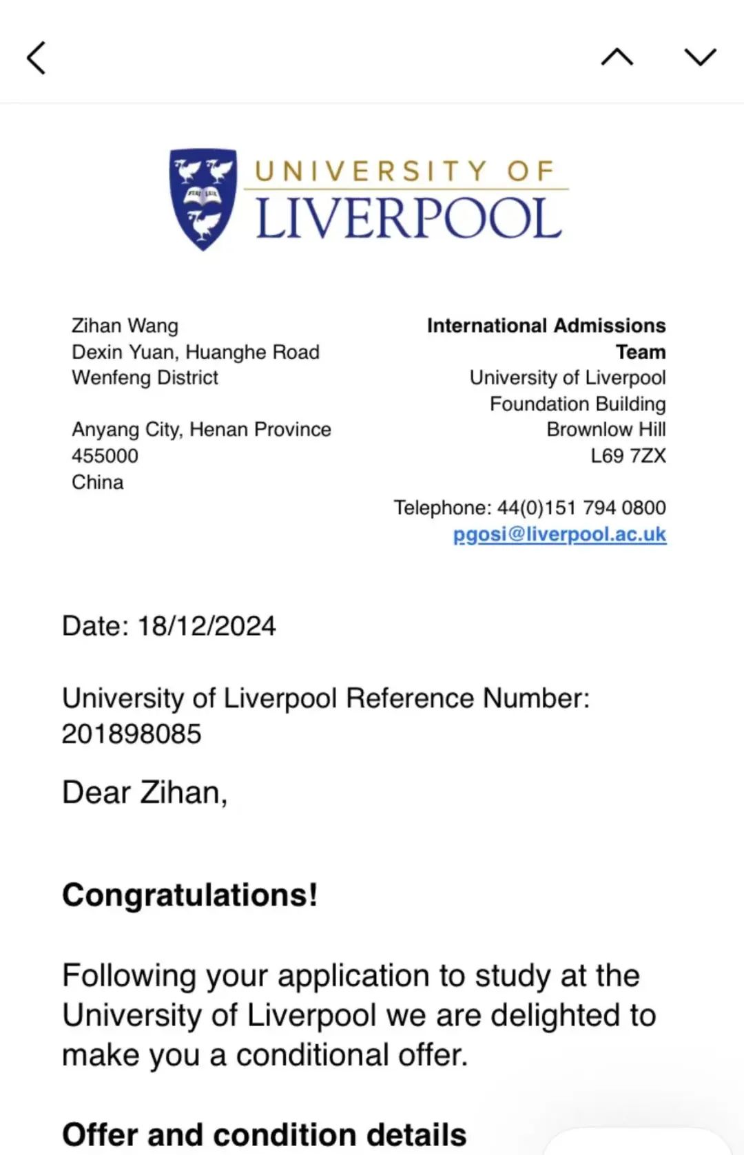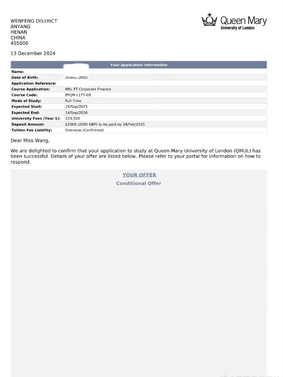 我校21级金融学(4+1国际菁英班)学生,王子涵,高中毕业于河南林州市林虑中学。
