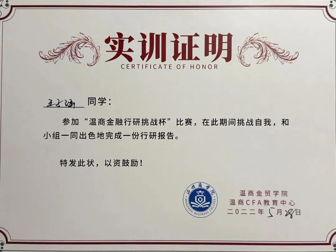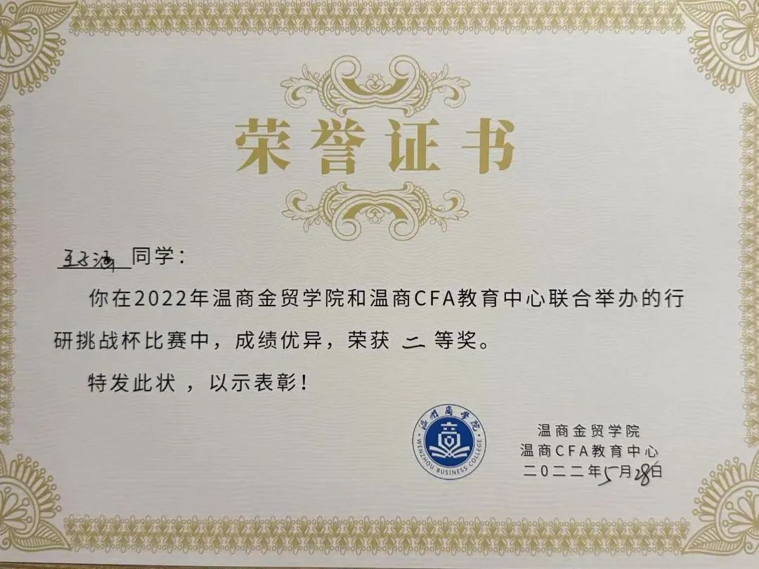 在专业学习的道路上,构建起系统的学术思维框架。面对全英专业课的挑战,也获得95+的成绩。课后,她将理论应用于实践,在金融行研挑战杯中获得二等奖。