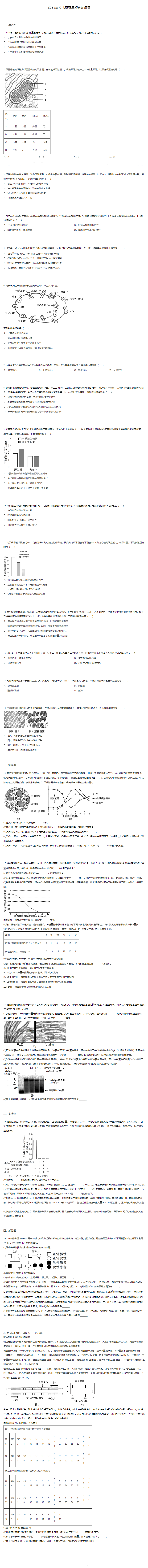 2025高考北京卷生物真题试卷