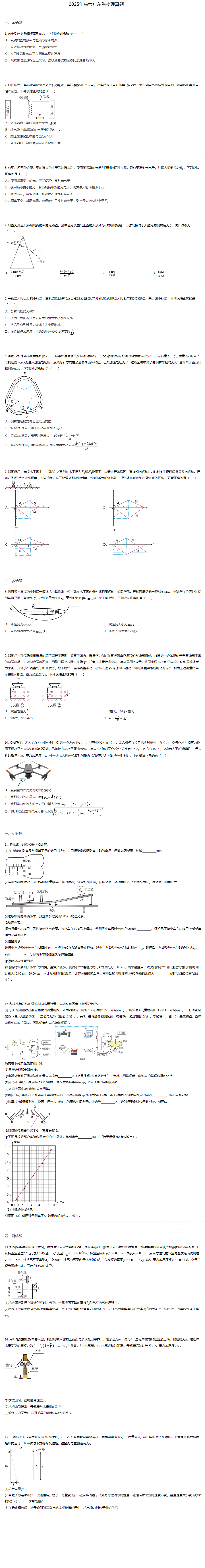 2025年高考广东卷物理真题