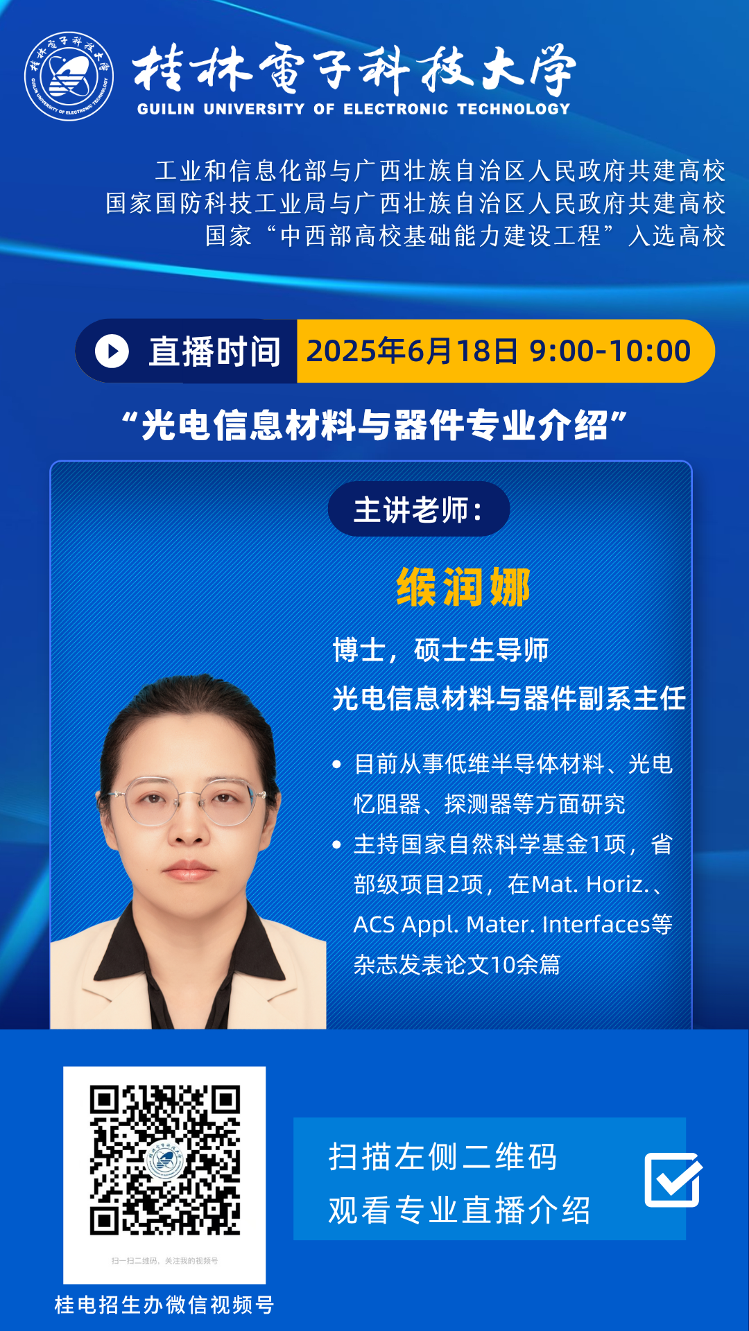 缑润娜,博士,硕士生导师。材料科学与工程学院光电信息材料与器件副系主任,目前从事低维半导体材料、光电忆阻器、探测器等方面研究。主持国家自然科学基金1项,省部级项目2项,在Mat. Horiz.、 ACS Appl. Mater. Interfaces等杂志发表论文10余篇。