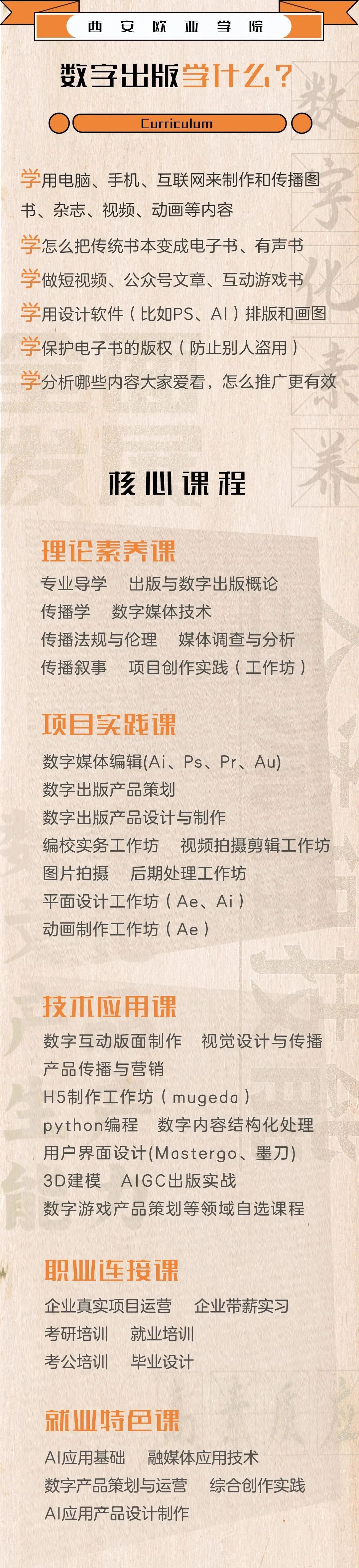 专业名称:数字出版 学制:4年 学位授予门类:文学 选考科目:历史/物理 所在学院:文化传媒学院