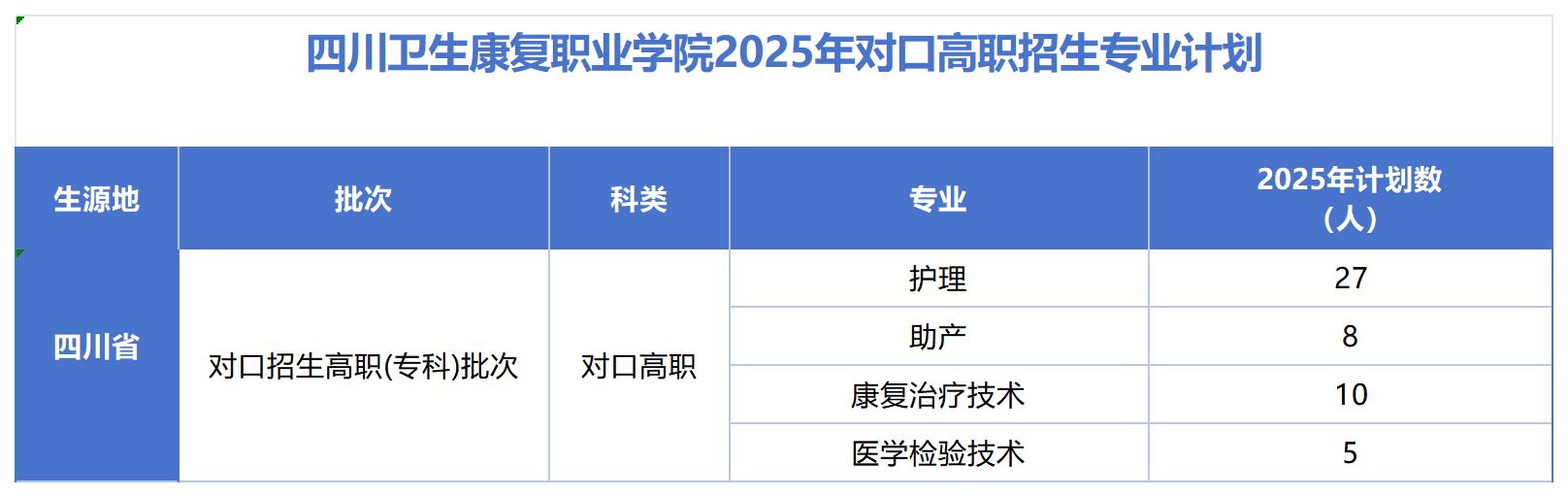 2025年对口高职招生计划表