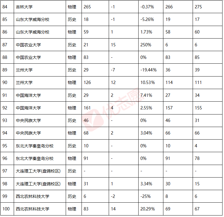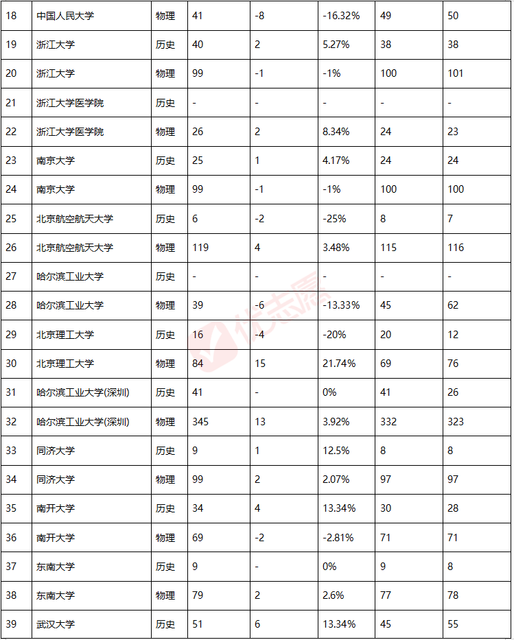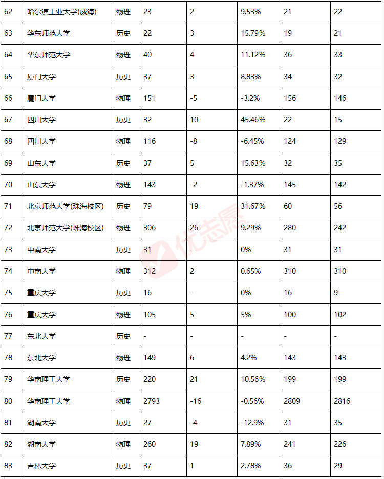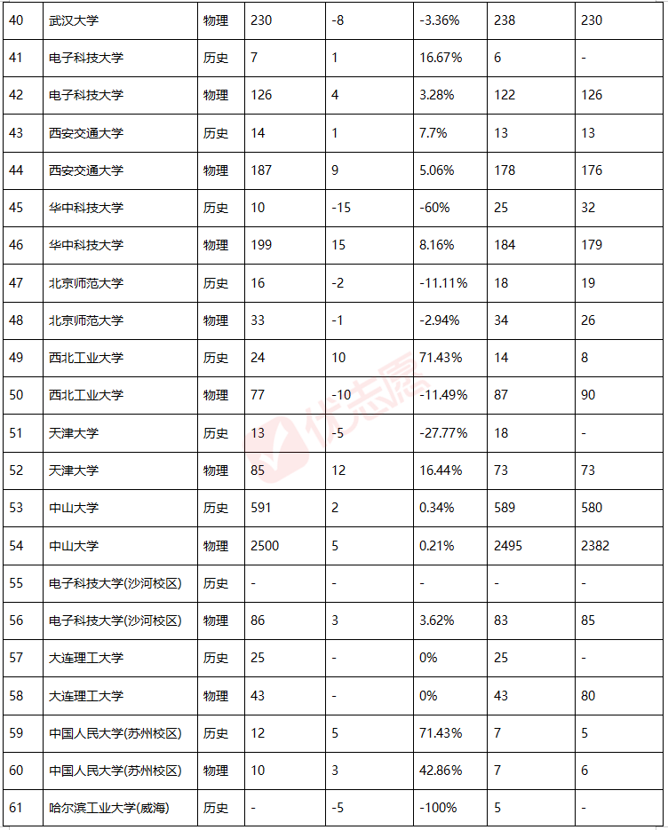 减幅最大:华中科技大学历史类招生计划减少60%,哈尔滨工业大学(威海)历史类招生计划更是减少100%,成为减幅最大的院校。