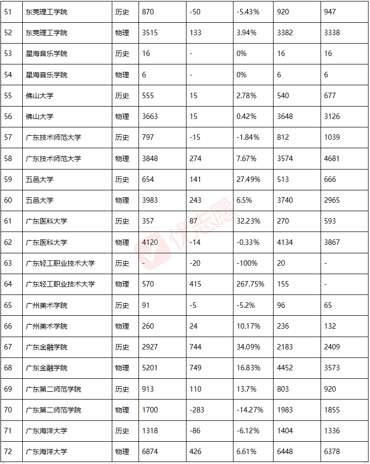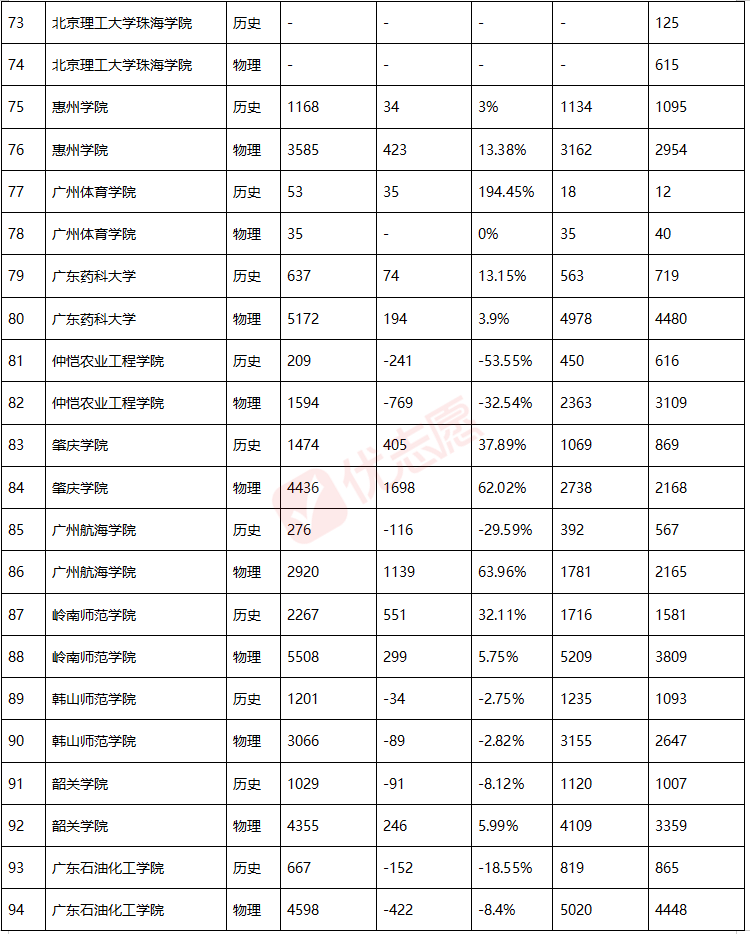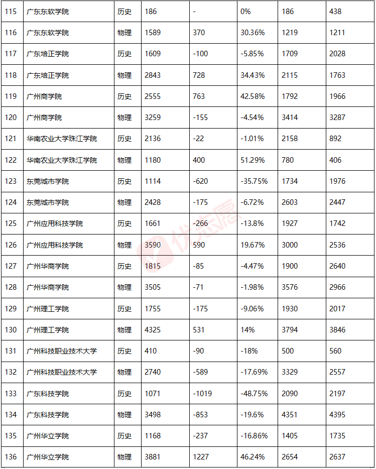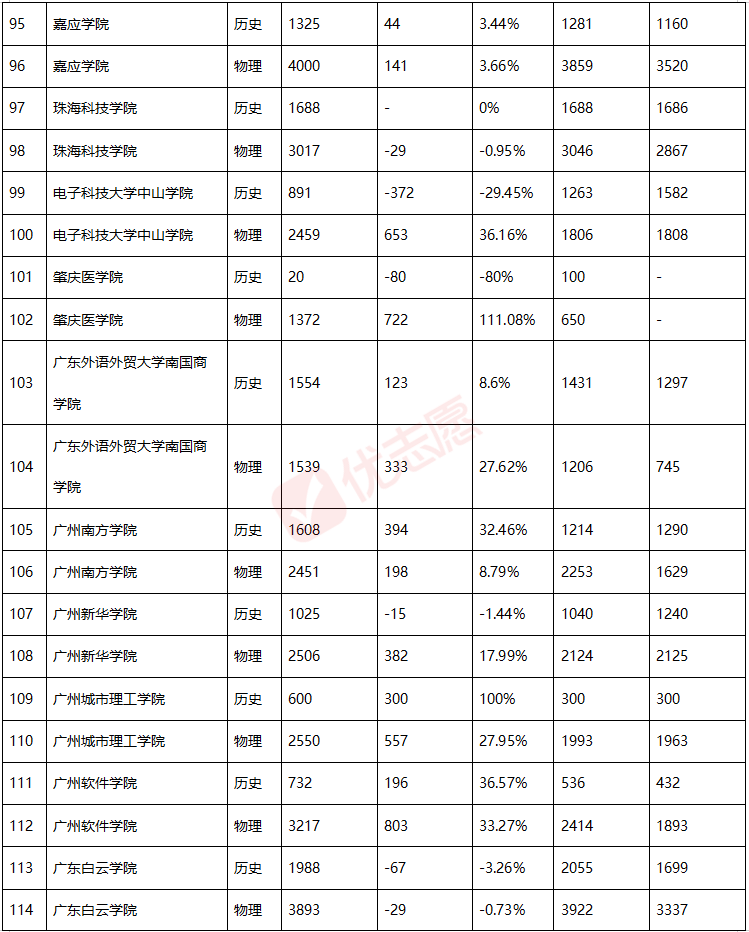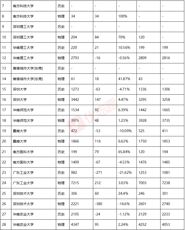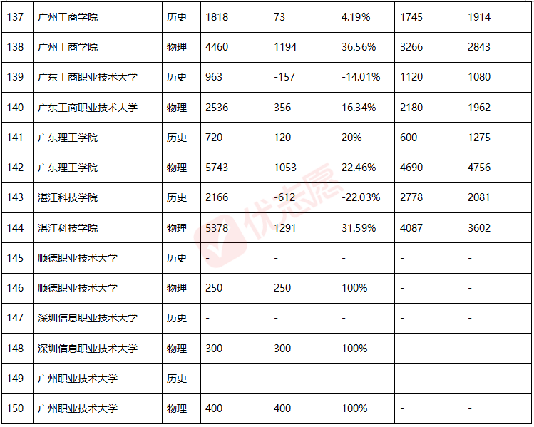 此外,仲恺农业工程学院物理类招生计划遭遇“断崖式”下跌,锐减幅度达32.54%,减少人数多达769人,成为此次招生计划调整中降幅最大的院校。