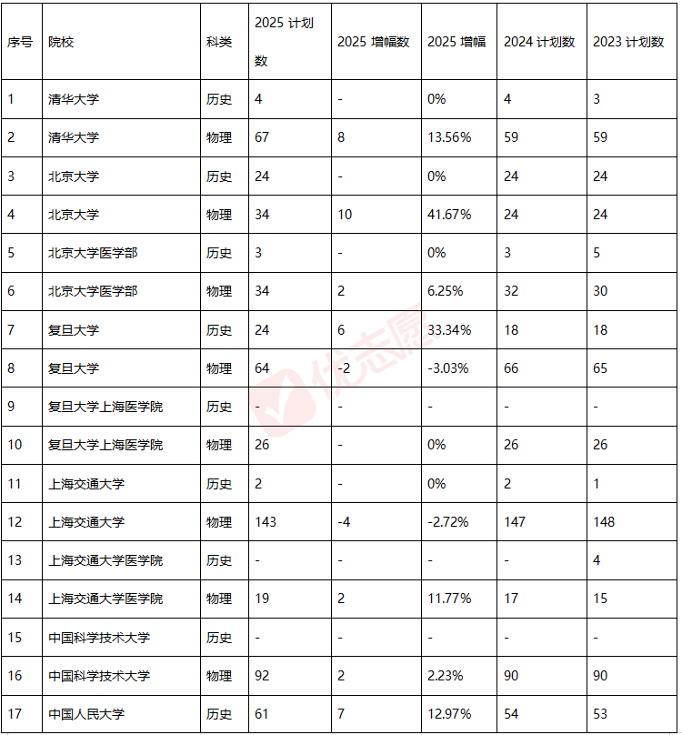 清华大学和北京大学在物理类招生上均有小幅增加,分别增加了8人和10人,历史类招生计划则维持不变。