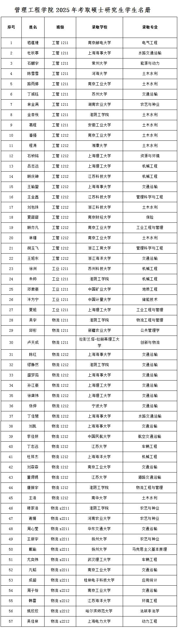 管理工程学院拥有工程管理(物流工程与管理)硕士点和物流工程、工程管理两个本科专业,物流工程专业入选省级一流本科专业建设点;拥有省级科研教学平台—“江苏省智能工厂工程研究中心”“江苏省城乡住宅结构装配技术工程实验室”和校级一流学科建设点—“管理科学与工程”。依托淮阴工学院国家级虚拟仿真实验教学中心、江苏省基础实验教学示范中心和一批校内外优质实验实习基地开展实践教学和社会服务。