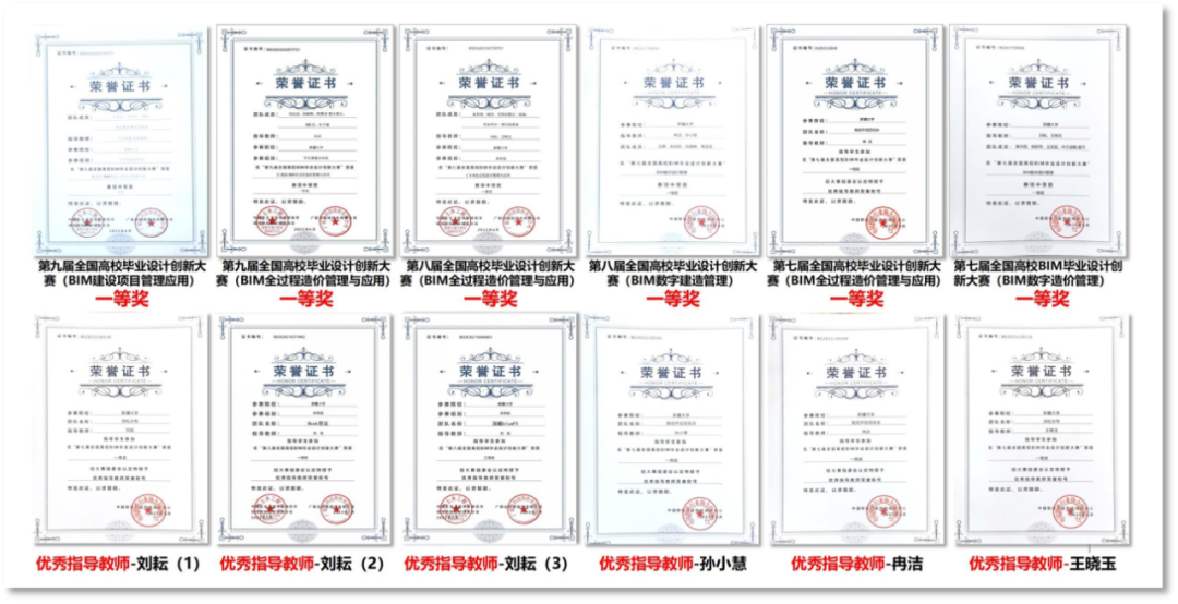 近年来积极组织学生参加“全国数字建筑创新应用大赛”、“全国高校BIM毕业设计创新大赛”以及“鲁班杯”全国高校BIM毕业设计作品大赛等多种大赛,并且在近三年荣获一等奖、二等奖、三等奖共二十九项。