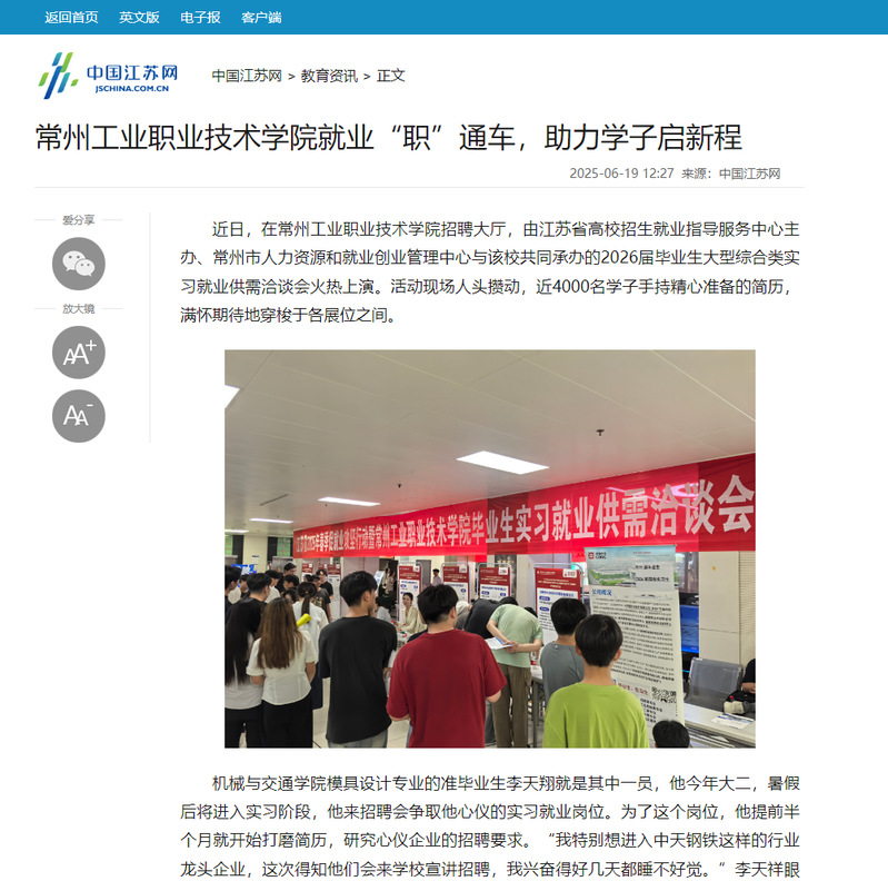 中国常州网:常州工业职业技术学院就业“职”通车,助力学子启新程
