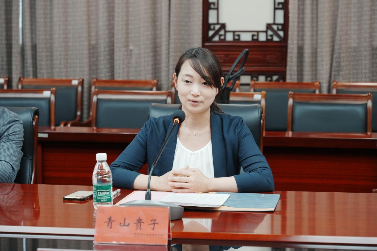青山贵子对我校的热情接待表示感谢,并介绍了山梨学院大学的专业优势及留学生培养情况。她表示,希望以此次访问为契机,增进了解与互信,并结合我校实际,共同开发优质的合作项目。