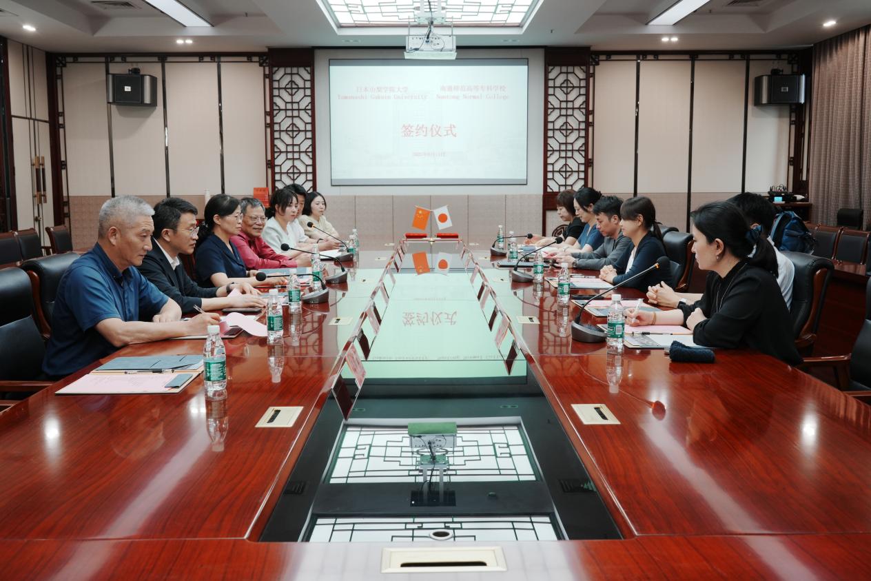 会谈结束后,朱月萍与青山贵子代表两校共同签署了合作框架协议。双方互赠纪念品并合影留念。