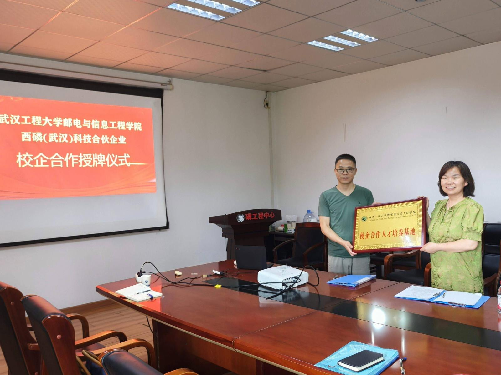 (通讯员张旭)6月10日,学院副院长盛义龙带队走访西磷(武汉)科技合伙企业(有限合伙),开展校企合作暨访企拓岗就业专项行动。在与会人员的共同见证下,盛义龙代表学院与西磷签订校企合作框架协议,并举行“校企合作人才培养基地”授牌仪式。