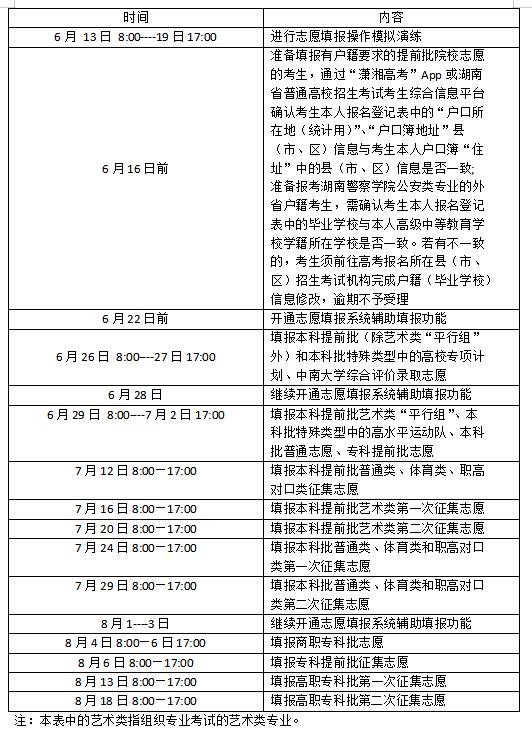 湖南省2025年普通高校招生网上填报志愿时间安排表
