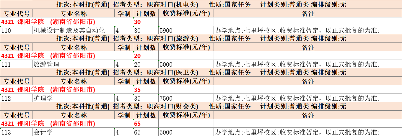 邵阳学院2025年在湘招生专业分组(职高对口类专业计划)