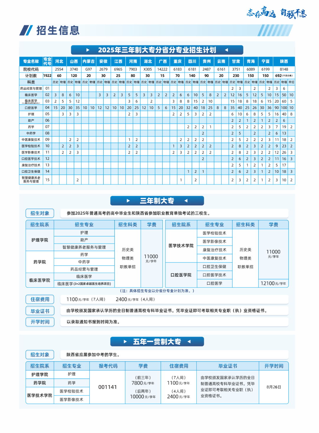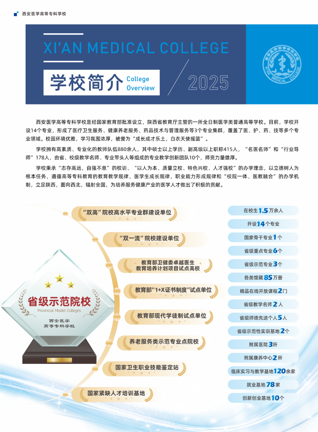 西安医学高等专科学校2025年秋季招生简介(含分省分专业计划)
