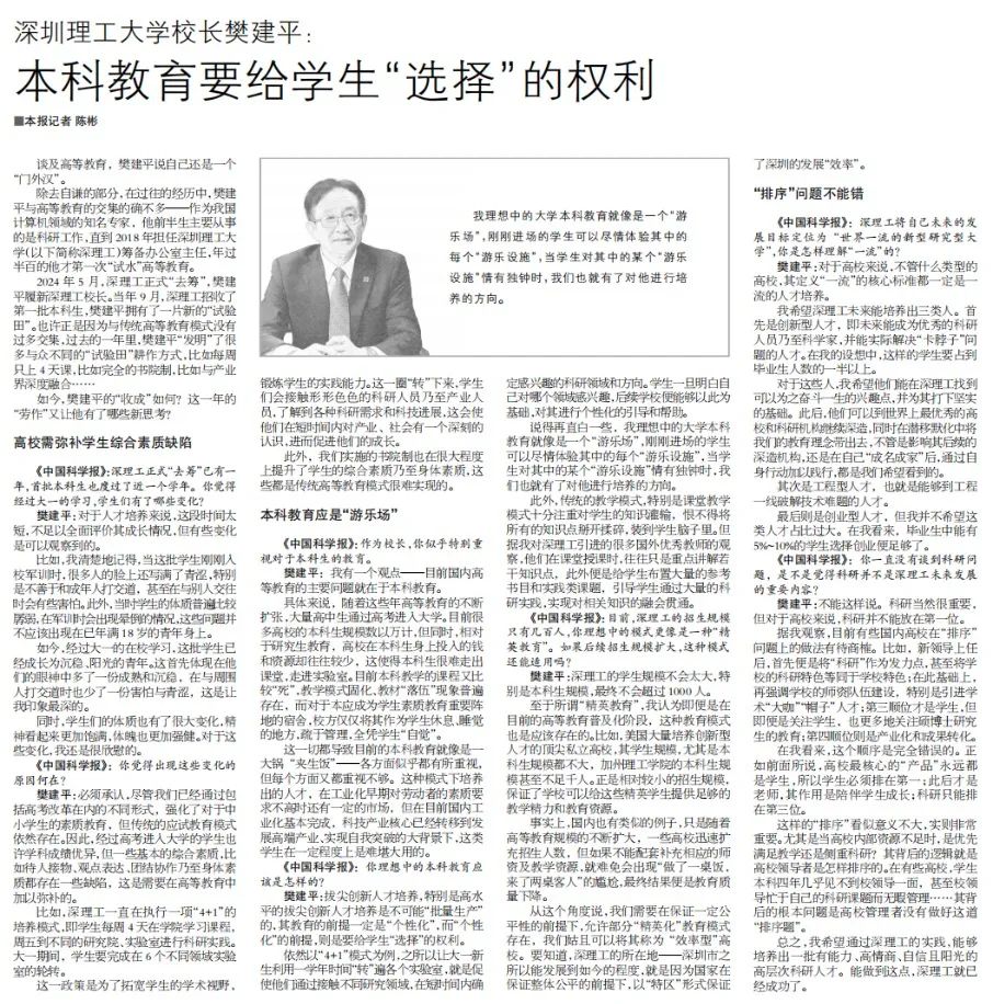 编者按:6月17日,《中国科学报》刊发了专访深圳理工大学校长樊建平的文章,深入探讨了高等教育中的本科教育。樊建平认为,培养高水平的拔尖创新人才的前提应该是“个性化”。