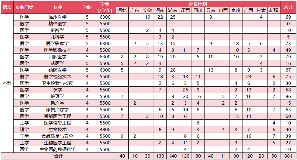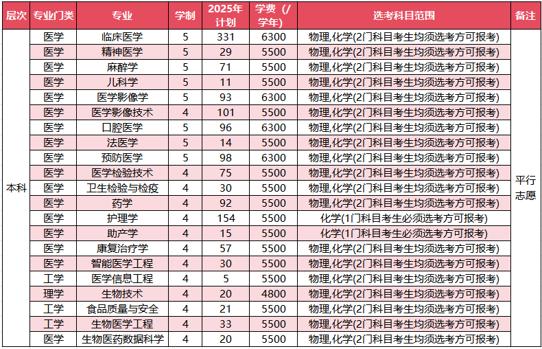本科招生计划2500人(含基层卫生人才定向招生151人,单考单招42人),专科招生计划150人(单考单招150人),快来看看哪些专业吧!
