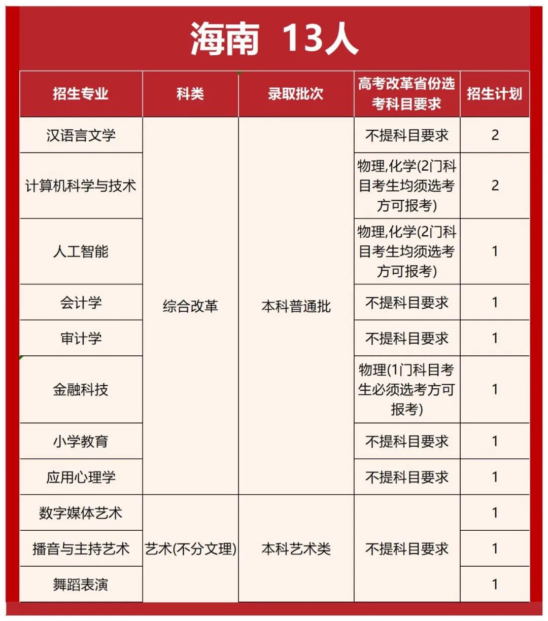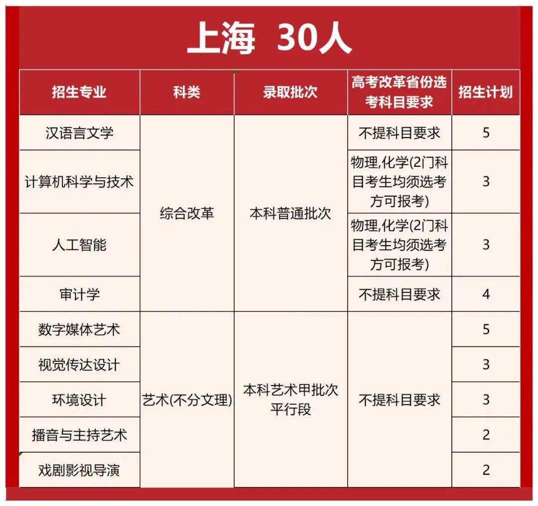 无招生省(自治区、直辖市):辽宁、安徽、福建、江西、山东、西藏、香港、澳门、台湾。