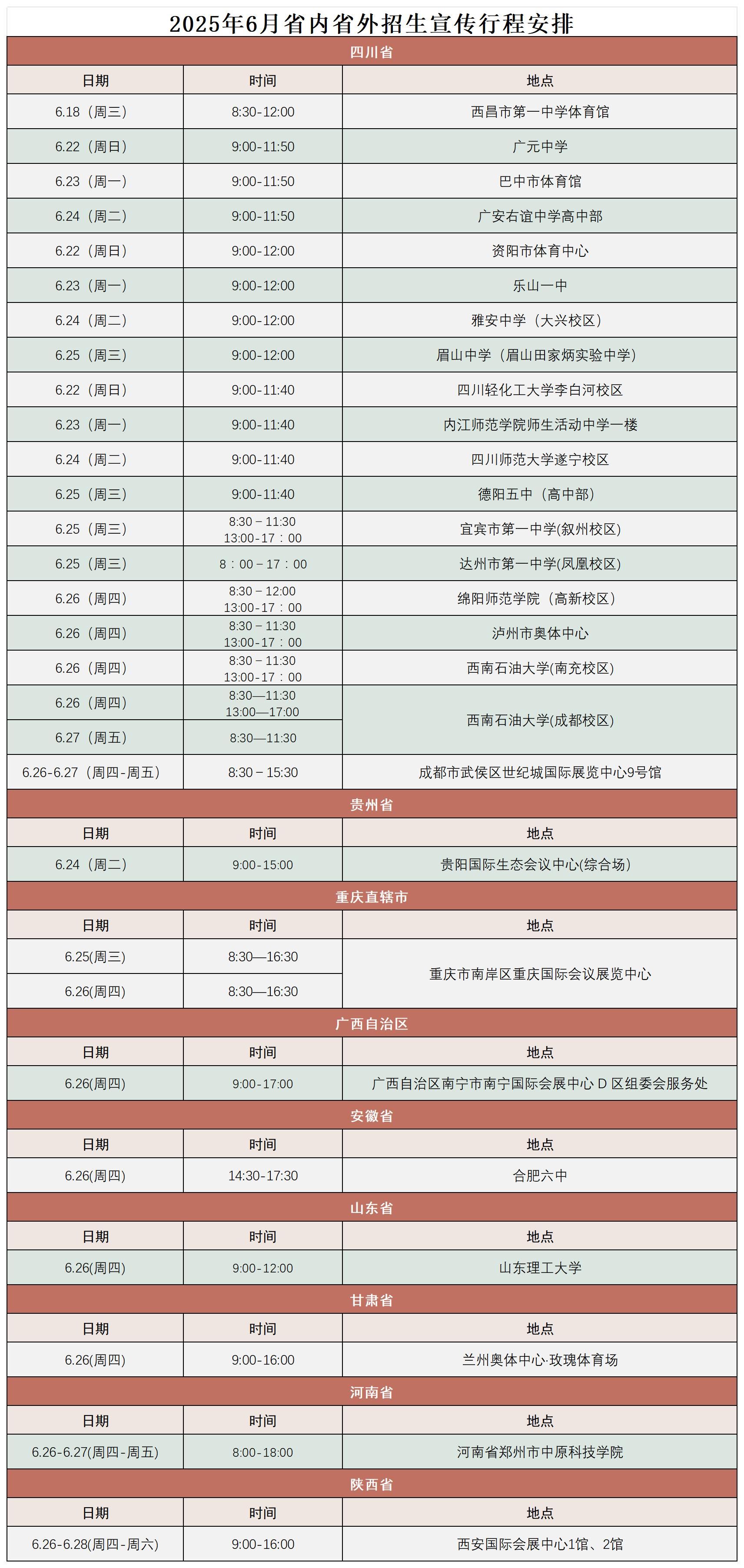 为帮助广大考生和家长深入了解西南医科大学的办学特色、专业设置、教学资源及招生政策,我校将陆续开展2025年线下招生宣传咨询活动。此次活动将为考生和家长提供面对面交流的机会,解答志愿填报、专业选择等相关问题,助力考生科学规划未来。欢迎各地考生及家长前来咨询报考相关事宜!