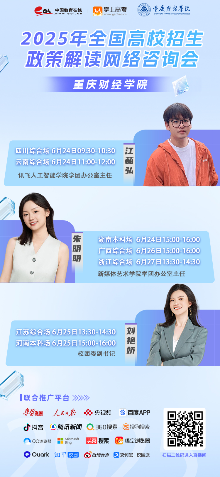 重庆财经学院2025年全国高校招生政策解读网络咨询会时间安排