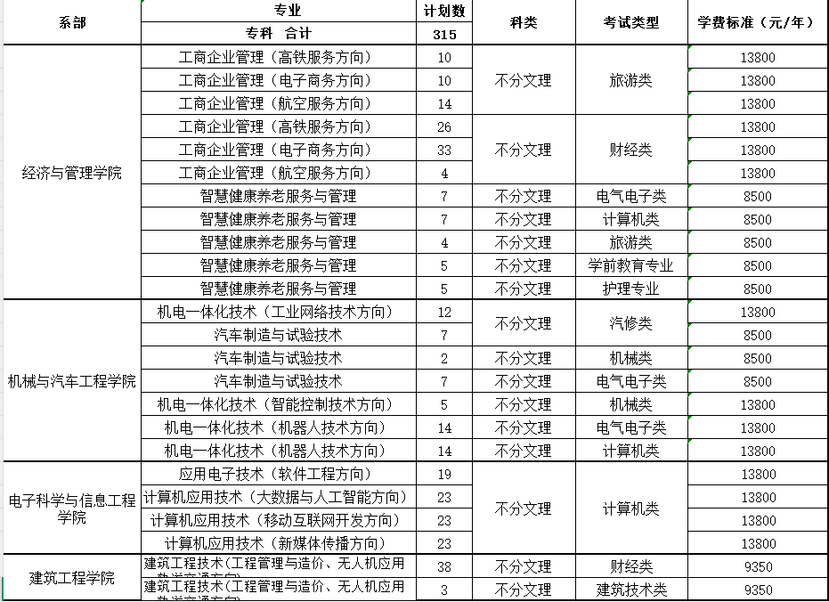 湖北文理学院理工学院2025年湖北省中职技能高考专科招生计划