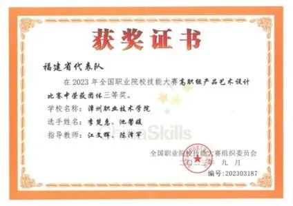 【专业特色】本专业与漳州市工信局、漳州工艺美术学会、漳州市广告协会等建立深度合作关系,致力于现代艺术和传统工艺的结合,2023年参加全国职业技能大赛产品艺术设计赛项获第三名。