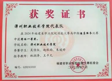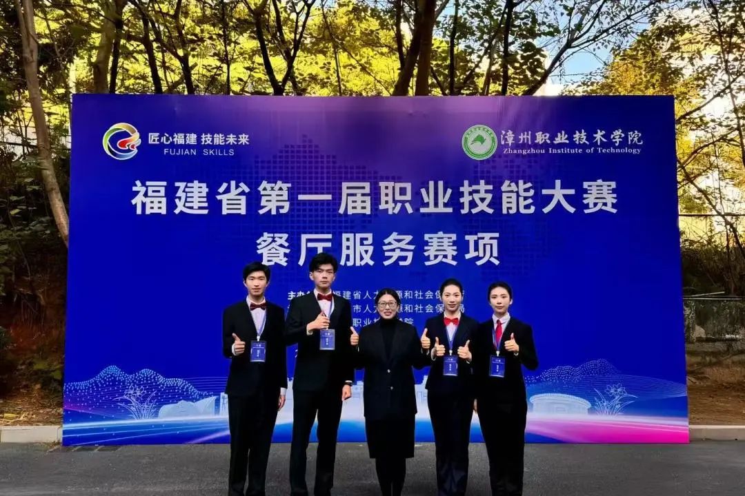 图5 福建省第一届职业技能大赛餐厅服务赛项包揽金银铜奖
