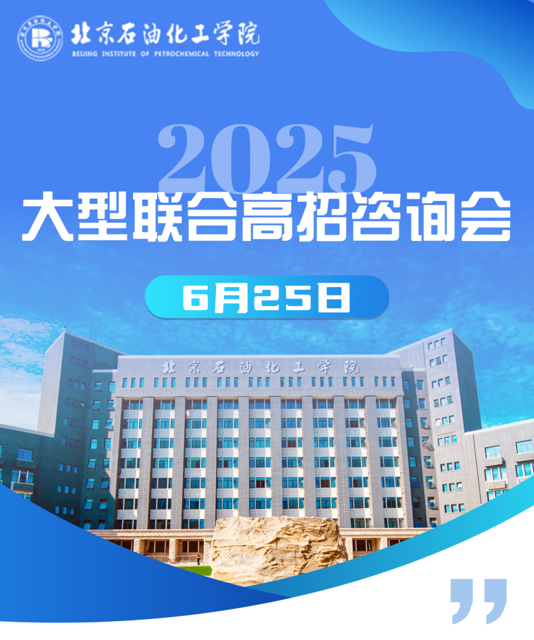 6月25日14:00—17:00,“北京2025年高考出分后大型场地高招咨询会”将在我校清源校区举行。届时将有近80所京内外“双一流”高校、普通高校招生负责人来到会场,面对面为北京考生和家长答疑解惑。