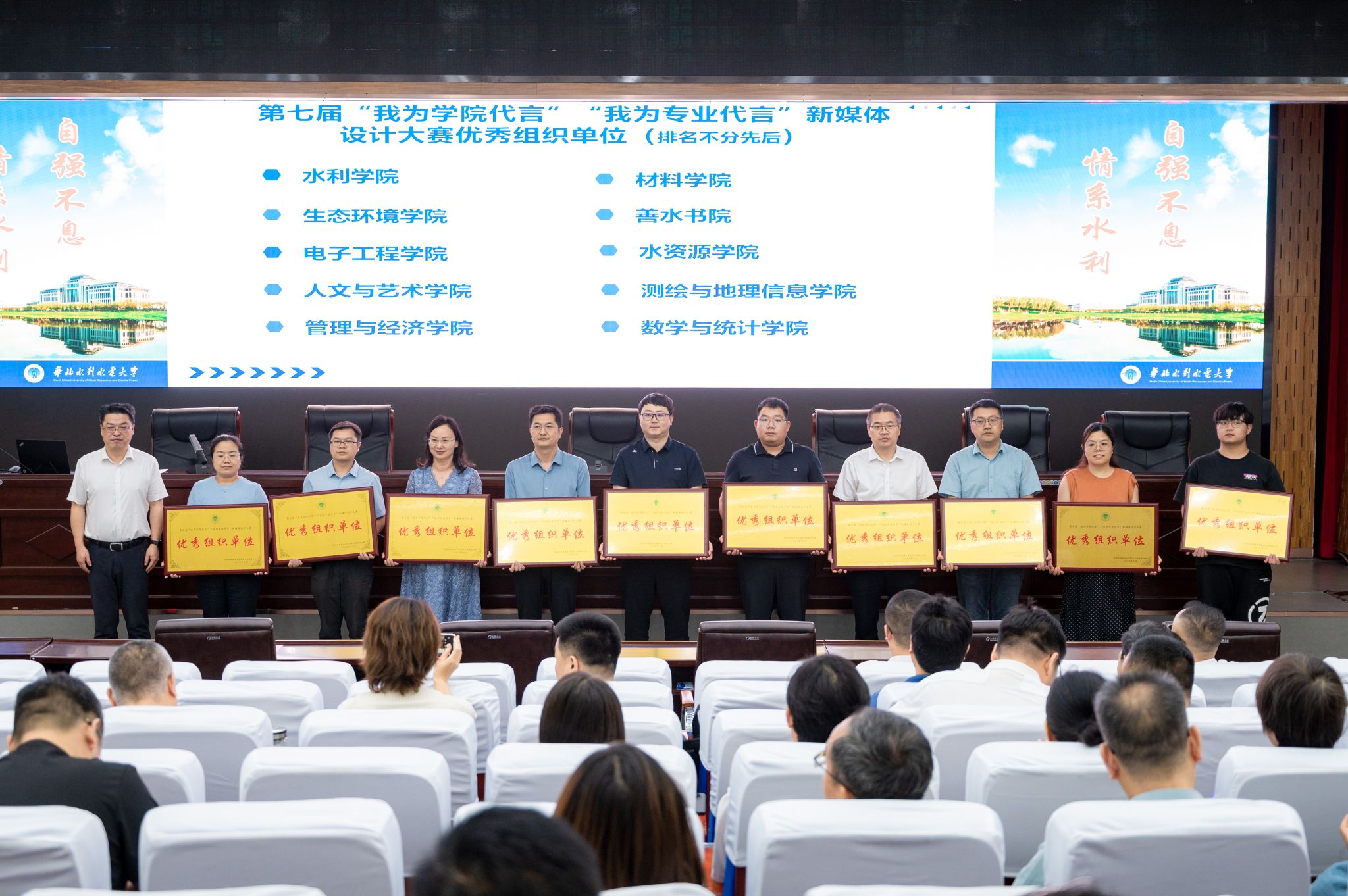 会议中,姜彤为第七届“我为学院代言”“我为专业代言”新媒体设计大赛优秀组织单位及第七届寒假“华水使者家乡行”优秀组织单位颁奖。