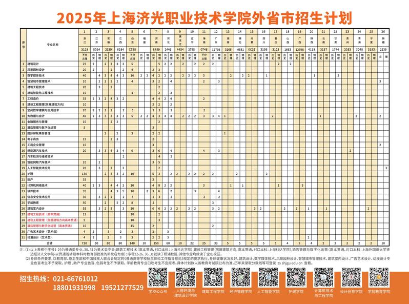 2025年上海济光职业技术学院外省市招生计划(彩色版)