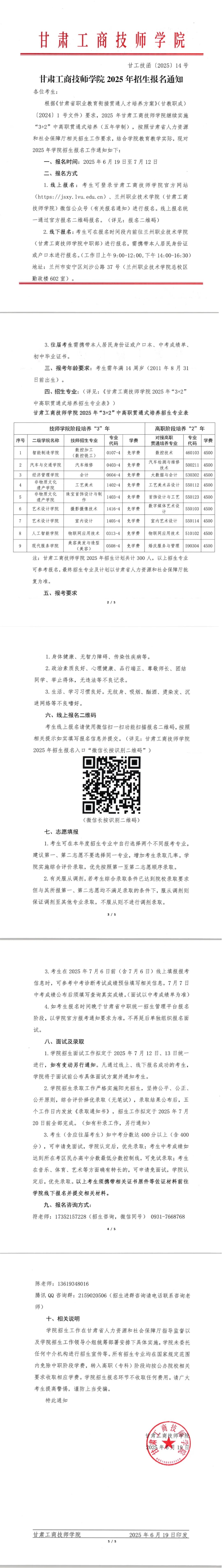 2025年招生报名通知LANZHOU VOCATIONAL TECHNICAL COLLEGE03向下滑动查看具体报名通知