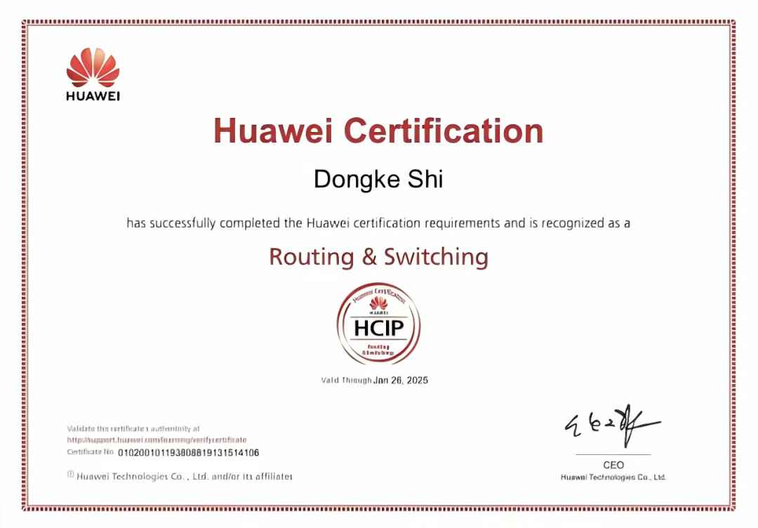 华为HCIP网络认证证书