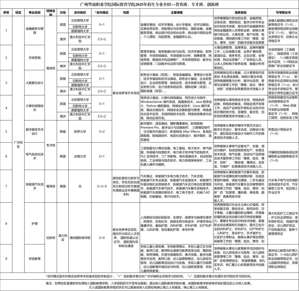 广州华商职业学院2025年招生专业介绍—菁英班、专才班、创新班