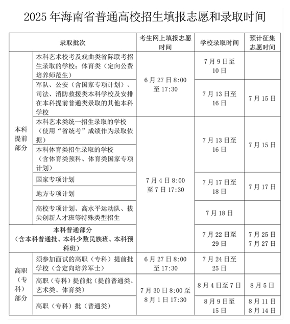 一、志愿填报时间安排