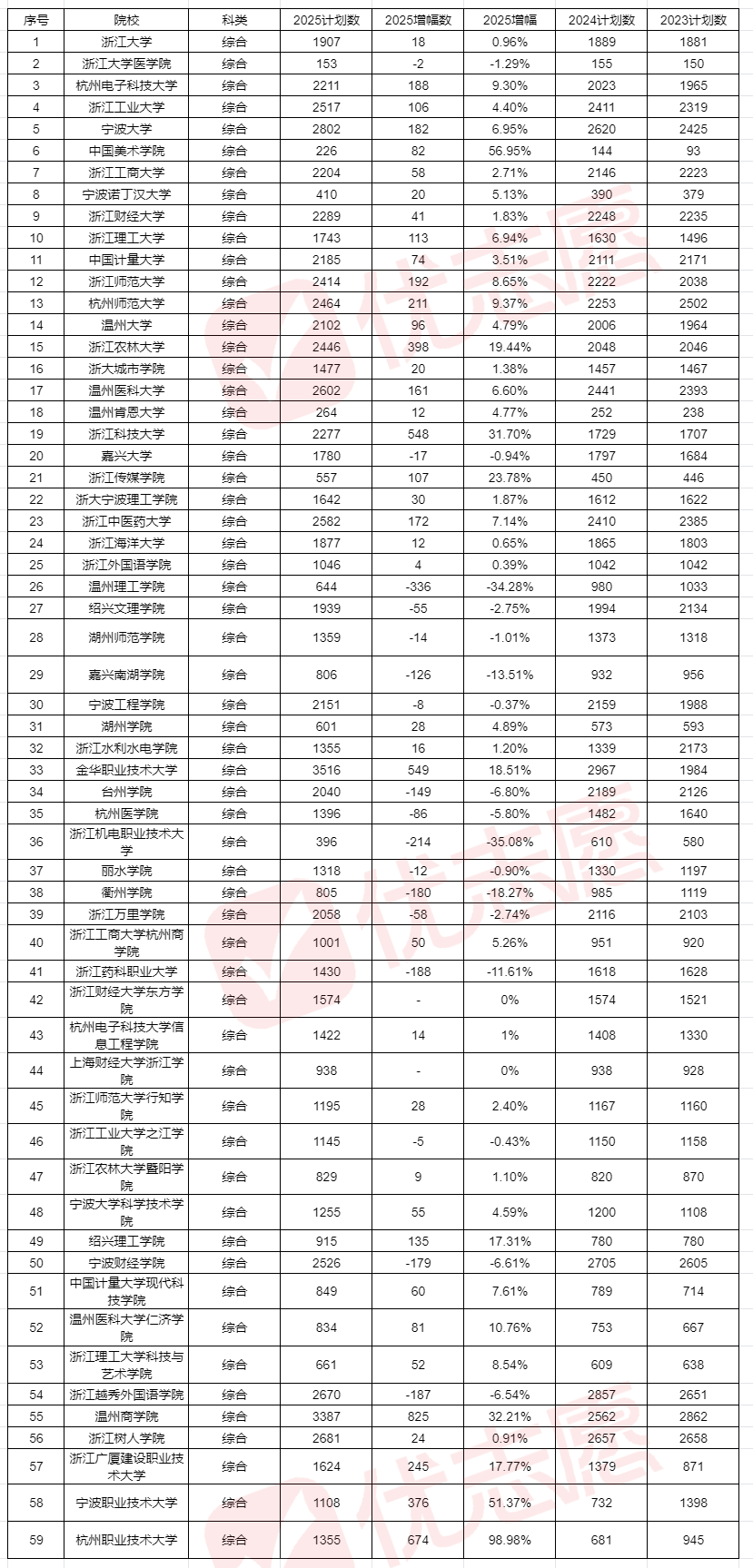 不过,也有12所院校计划数出现减少,温州理工学院降幅34.28%、浙江机电职业技术大学降幅35.08%,缩减最为明显。