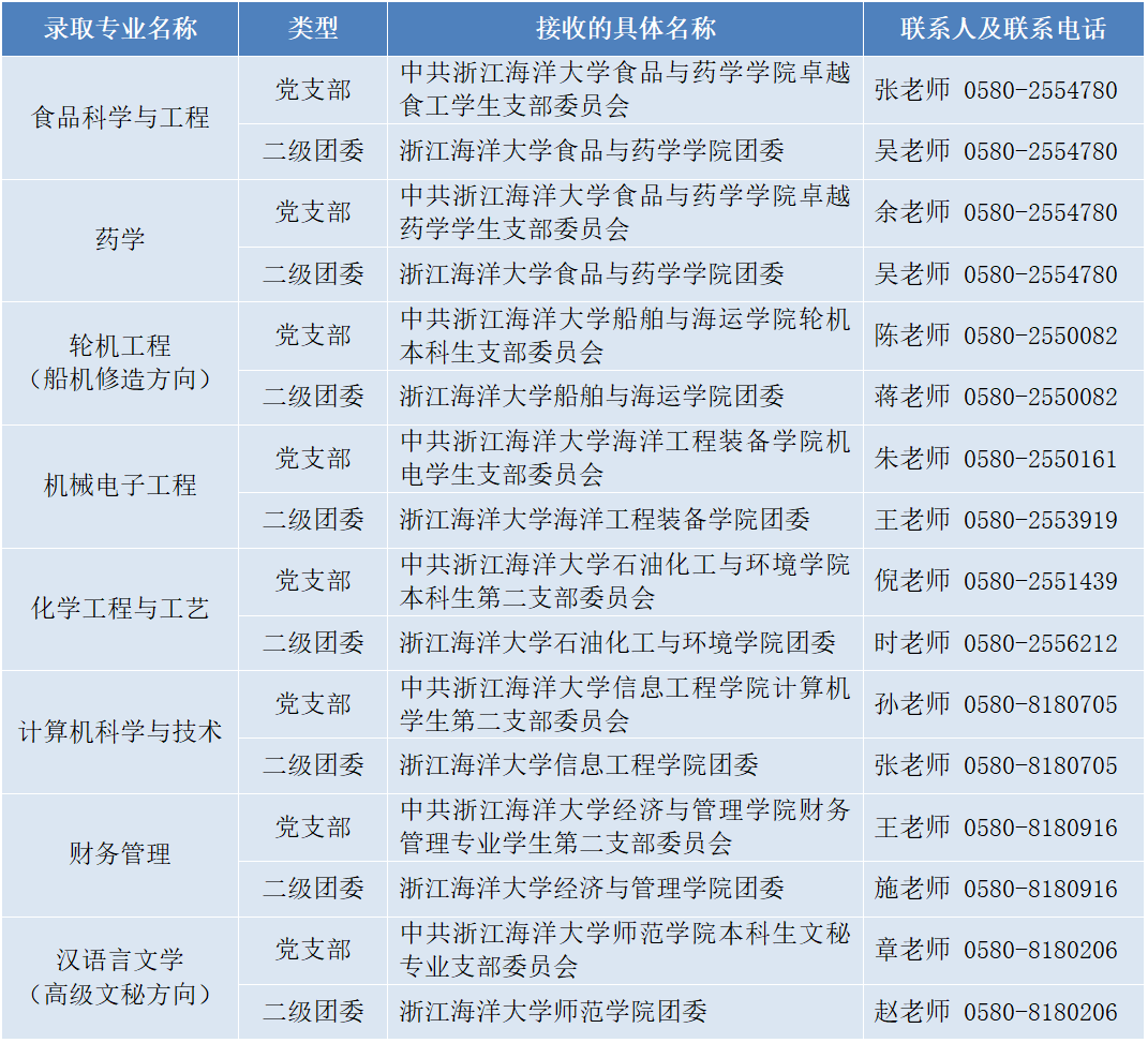 具体接收的党支部名称和二级学院团委名称见下表所示: