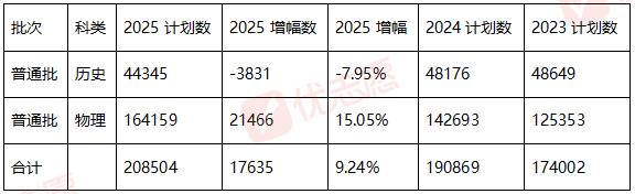 结论:招生计划持续向物理类倾斜,总量扩张但文理结构显著调整。