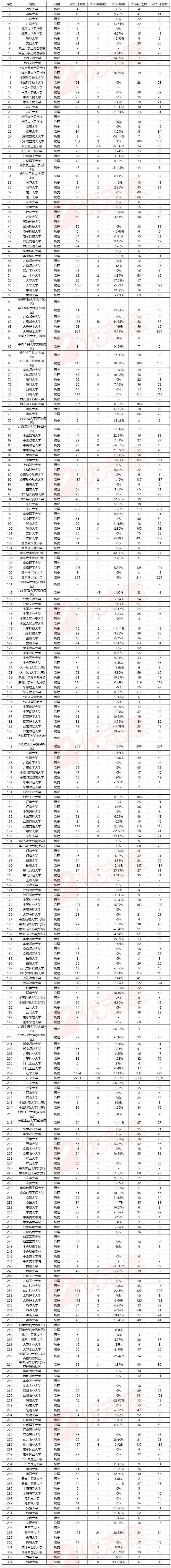 头部高校中,清华物理类扩招9.76%(+4人),北大物理类扩招13.64%(+3人),浙大