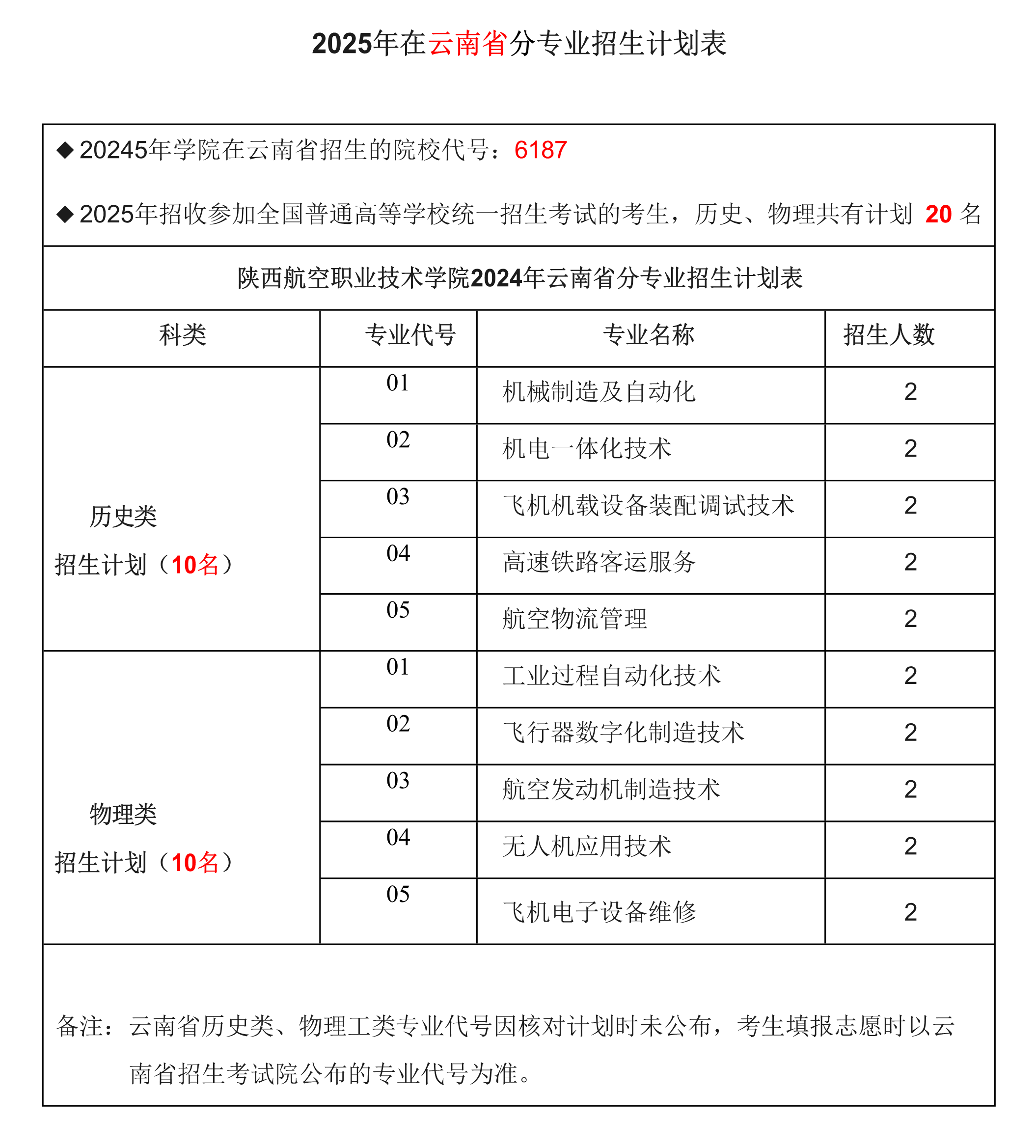 陕航职院2025年云南省招生专业计划表